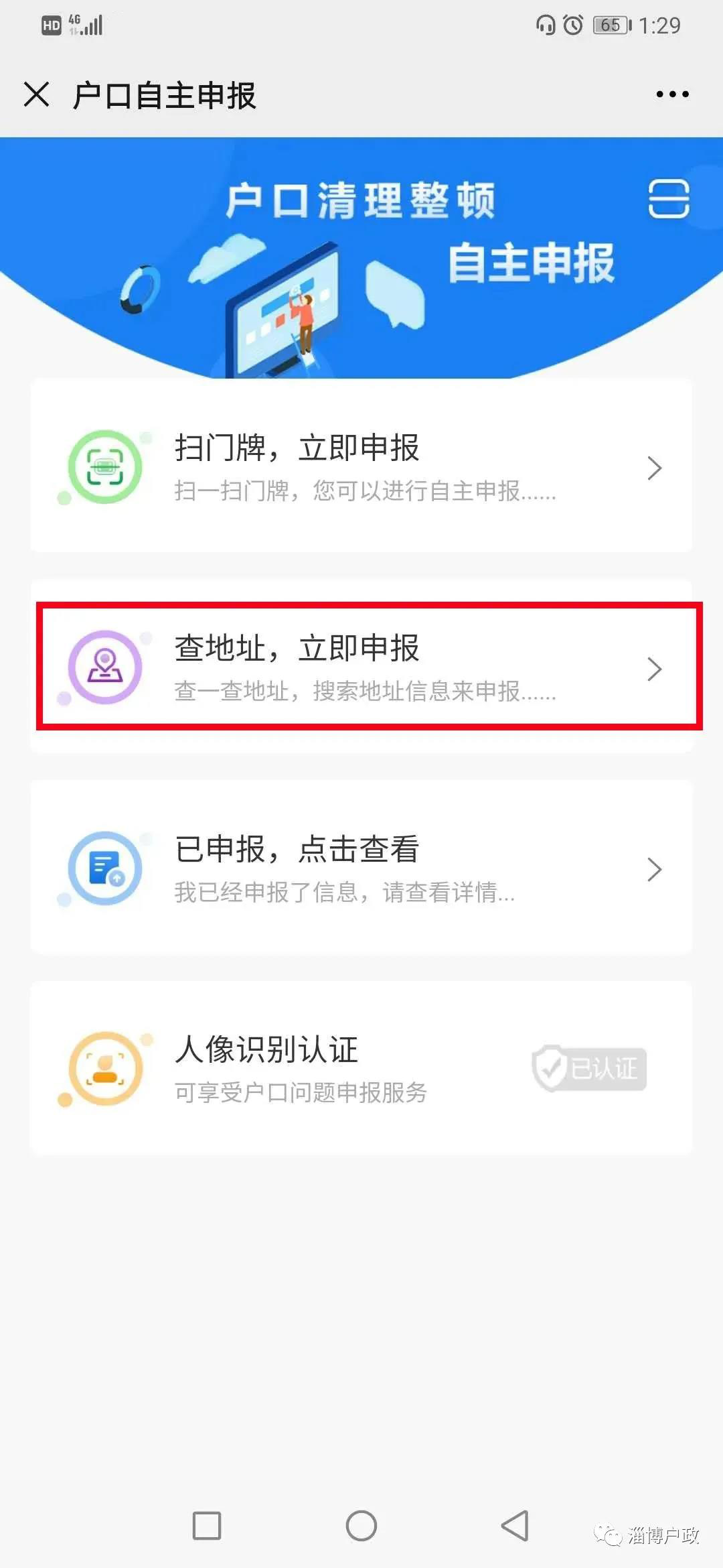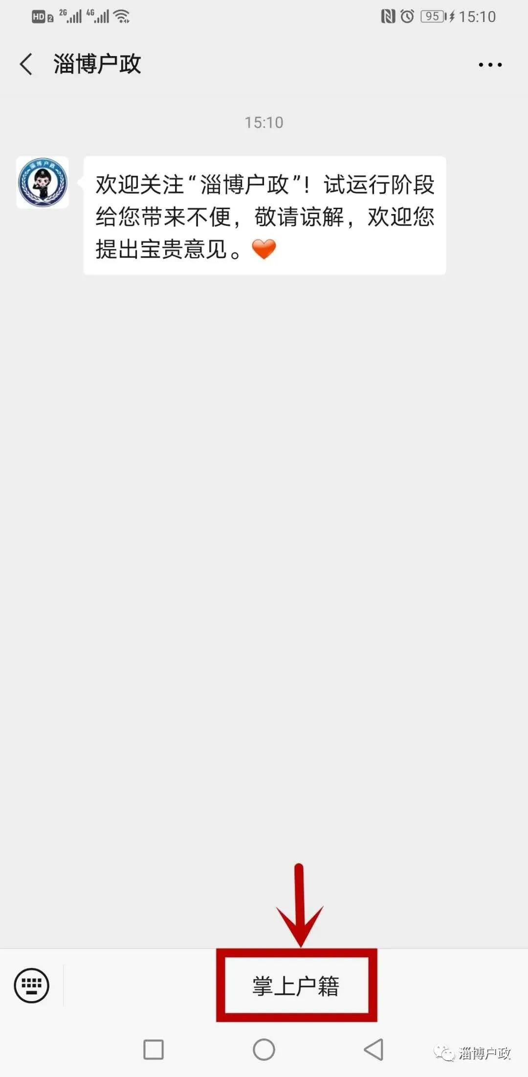 注:临淄区外户籍人口在我区居住3日以上的,应当自到达居住地之日起3个工作日内,持本人居民身份证等有效身份证件,向居住地公安派出所申报流动人口居住登记。如果“e申报”人员为流动人口且未到公安机关进行过居住登记,可在提交“e申报”信息后,根据提示继续进行流动人口居住登记。5.其他情况:户口线索征集或无户口人员申报户口可以通过“掌上户籍室”在线申报。(1)关注“淄博户政”微信公众号,进入“掌上户籍室”。