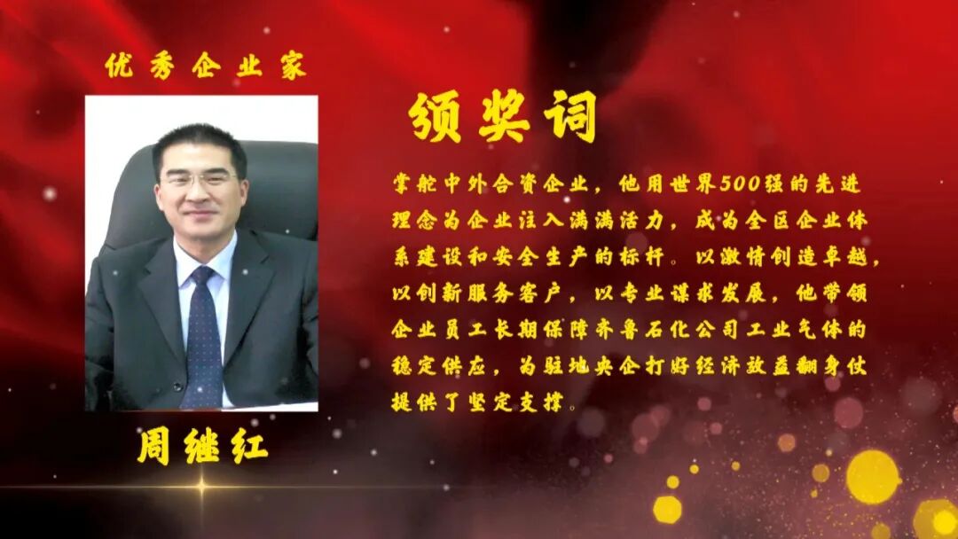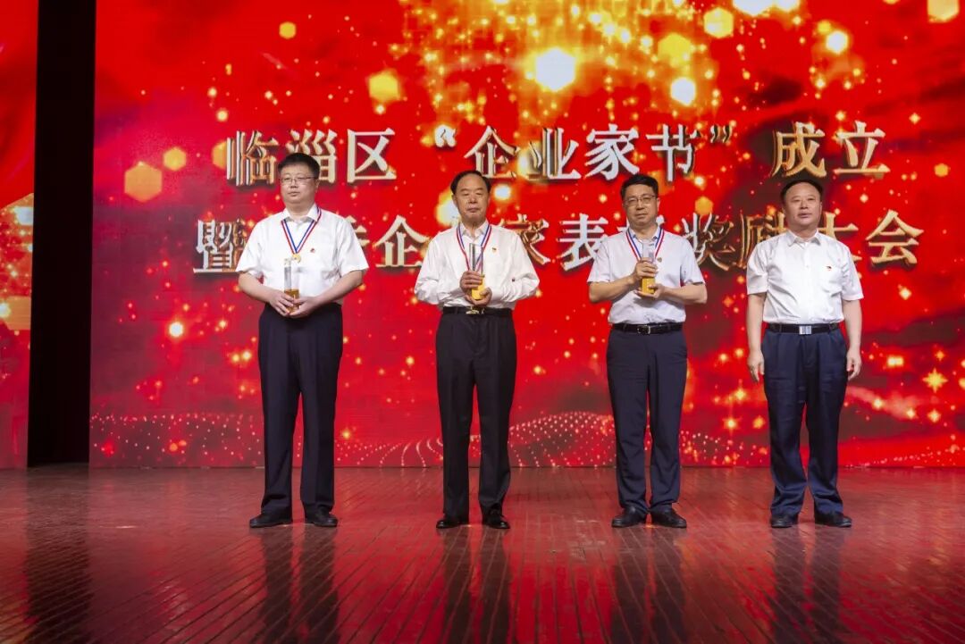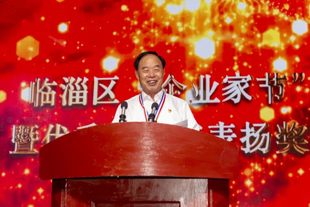 朱正林代表区大班子向受到表扬的“功勋企业家”“优秀企业家”“行业领军企业家”表示热烈祝贺。向为临淄发展作出突出贡献的广大企业家,致以最衷心的感谢。