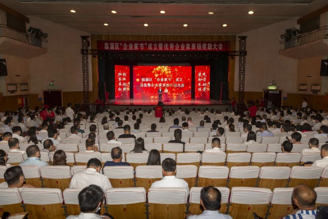 9月6日上午,临淄区“企业家节”成立暨优秀企业家表扬奖励大会在临淄人民会堂举行。临淄区“功勋企业家”、“优秀企业家”和“行业领军企业家”在前排就坐。区委书记朱正林出席会议并讲话。区人大常委会主任孙海青,区政协主席董红光,齐鲁化工区工委副书记张召才,区委副书记卢华栋等出席会议。