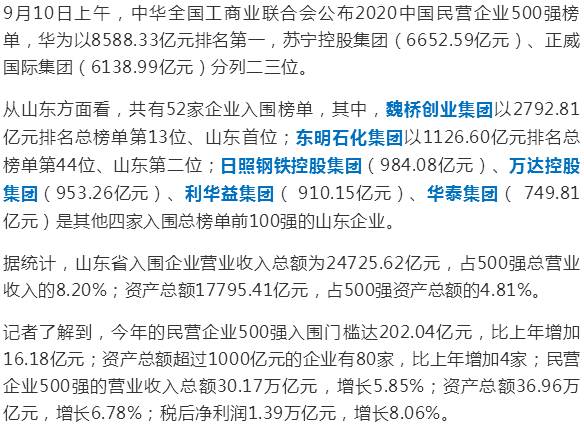 “2020中国民营企业500强名单”