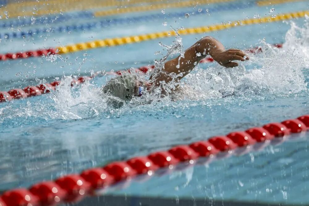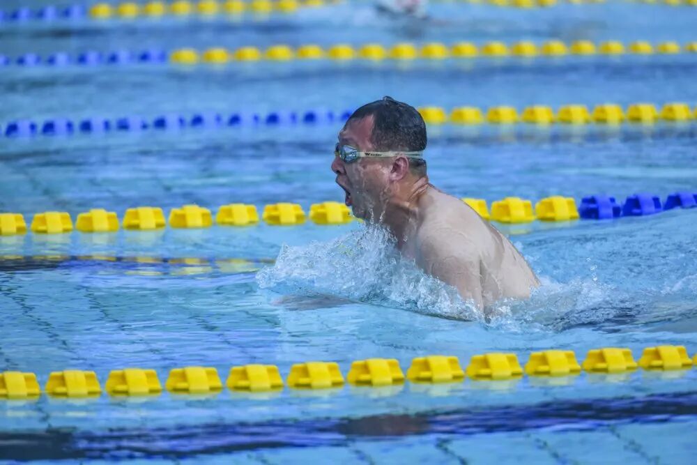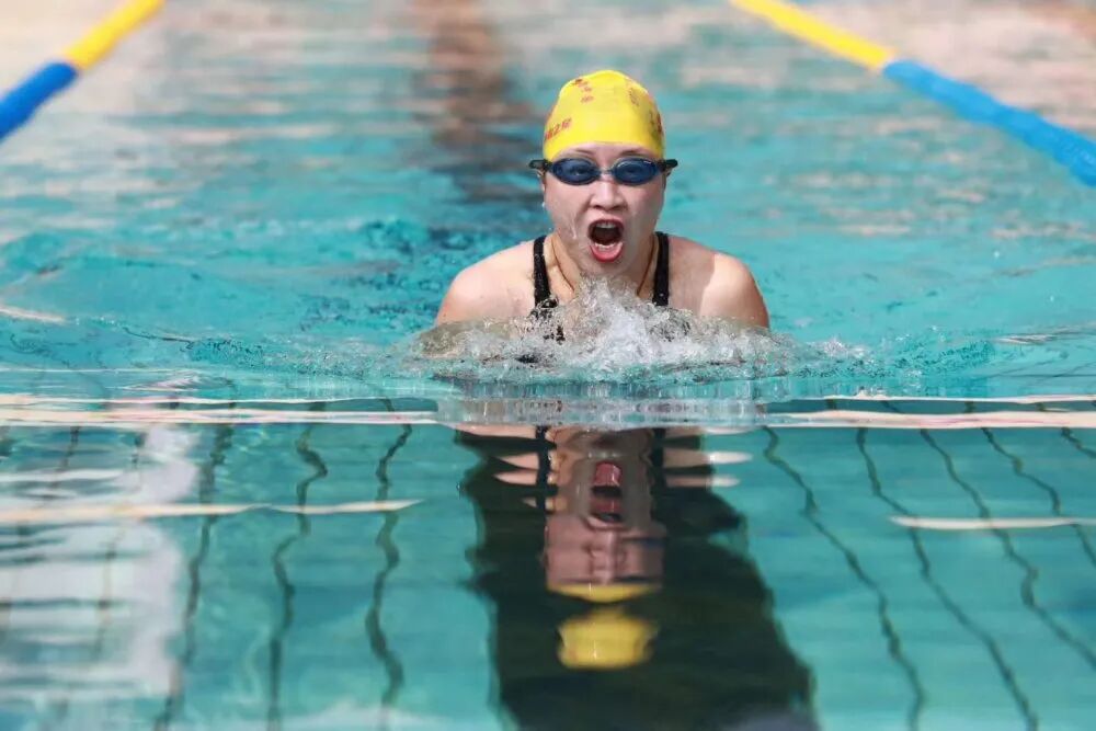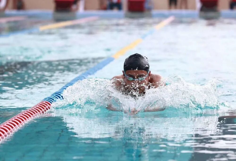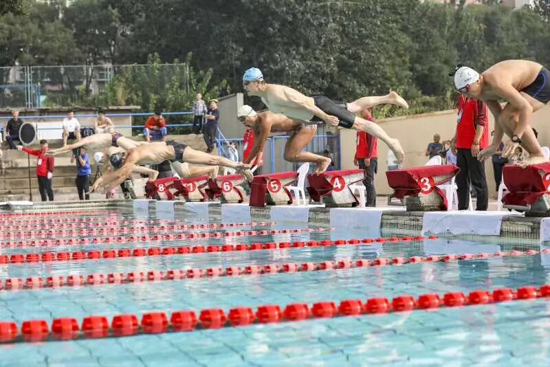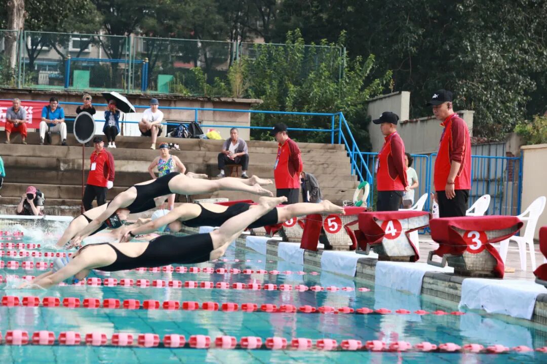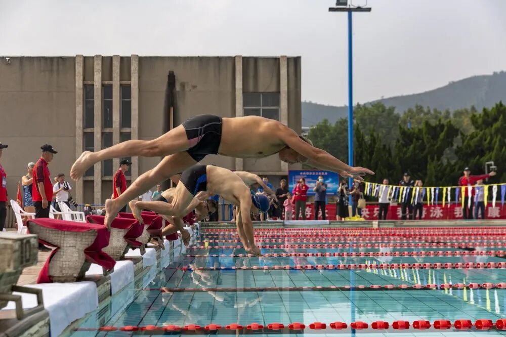 “各就各位,嘟……”,随着发令员一声哨响,参赛选手一跃而入,只见泳池里水花翻飞,选手们犹如离弦的箭一般奋力冲向终点。男子组的比赛竞争强力,女子组也巾帼不让须眉,游泳健将们凭借矫健的泳姿、强健的体魄,在水中奋勇争先,上演了一场精彩绝伦的水上追逐战,现场气氛紧张热烈,场上场下形成一片沸腾的海洋。