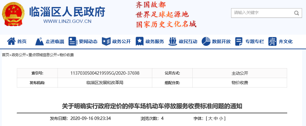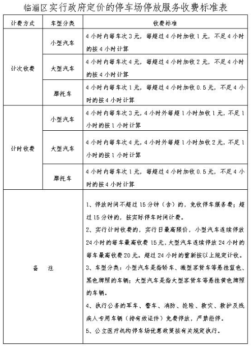 实行政府定价的各停车场收取的机动车停放服务费按《临淄区实行政府定价的停车场停放服务收费标准表》规定执行(见附件)。