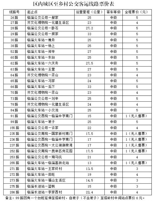 一、本次调整仅限于临淄区城区至乡村公交客运线路票价(详见附件)。城市一元无人售票公交客运线路票价仍按淄博市物价局《关于对空调公交车实行季节性票价的通知》(淄价字〔2018〕95号)执行。
