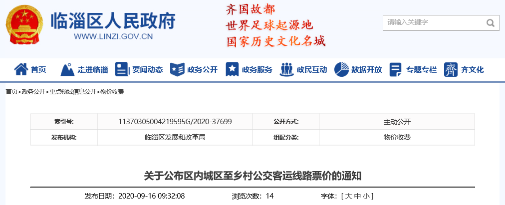 临淄区人民政府网站发布