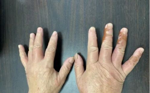 △捡拾白果后,刘女士双手长出不规则的棕色印记