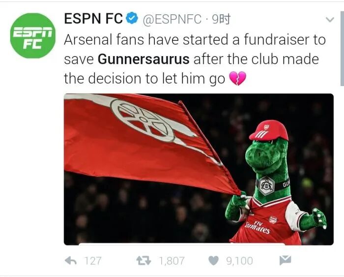 由于疫情影响,2020年对于世界体坛可以算作灾难性的一年,俱乐部的日子确实不算好过。但因此裁掉效力俱乐部近30年的吉祥物扮演者,对于球迷感情和球队文化的影响,会有多大呢?或许阿森纳应该思考一下这个问题。