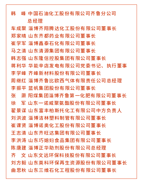 优秀企业家代表100名(临淄区21名)