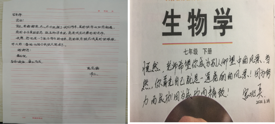 在提升自己文化底蕴的同时,她反思课堂教学如何避免形式上的华丽,追求内容上的质朴,提高课堂教学效率。她细细地分析每一节课的知识点,大胆地删除不重要的知识,提炼精华出每一节的重难点,适度地拓展每一个知识点的外围,她的这些观点用红笔满满地整理在自己的教学用书上,年年更新补充,最大限度地减少学生的学习负担,向课堂的每一分钟要质量。孩子们越来越喜欢生物课了。学生陈奕霖在给宫老师的一封信中写道:“您的授课水平真的很高,就生物学来说,您是我见过的最好的老师”。