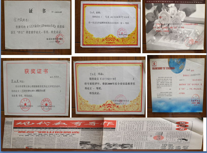 20年代初,北京师范大学于丹教授的《论语心得》,在《百家讲坛》、甚至各大视频网站热播,宫老师打印了有关《论语心得》所有的文字资料并利用剩余时间学习,渐渐地,宫老师的口语表达能力和教育理论在无形中增长,多篇论文分别在省、市、区各级论文评奖活动中获奖。2000年至2001年间,分别获得临淄区教学能手、临淄区优秀任课教师、临淄区优秀教师的称号;在辅导学生参加全国中学生生物学奥林匹克竞赛活动中,先后六次获得山东省奥林匹克优秀辅导员壹等奖、贰等奖、叁等奖的荣誉。
