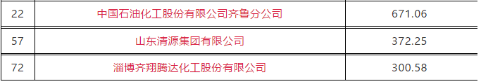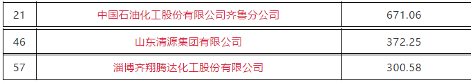 2019年度山东省工业百强企业名单中,上述3家临淄企业:中国石油化工股份有限公司齐鲁分公司、山东清源集团有限公司、淄博齐翔腾达化工股份有限公司分别位居第21、46、57位。