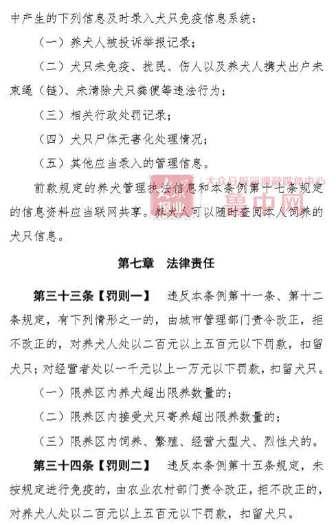 根据条例草案,犬只免疫信息系统还将录入执法信息,并联网共享。养犬人被投诉举报记录,犬只未免疫、扰民、伤人及养犬人携犬出户未束绳、未清除犬只粪便等违法行为,都将被录入系统。