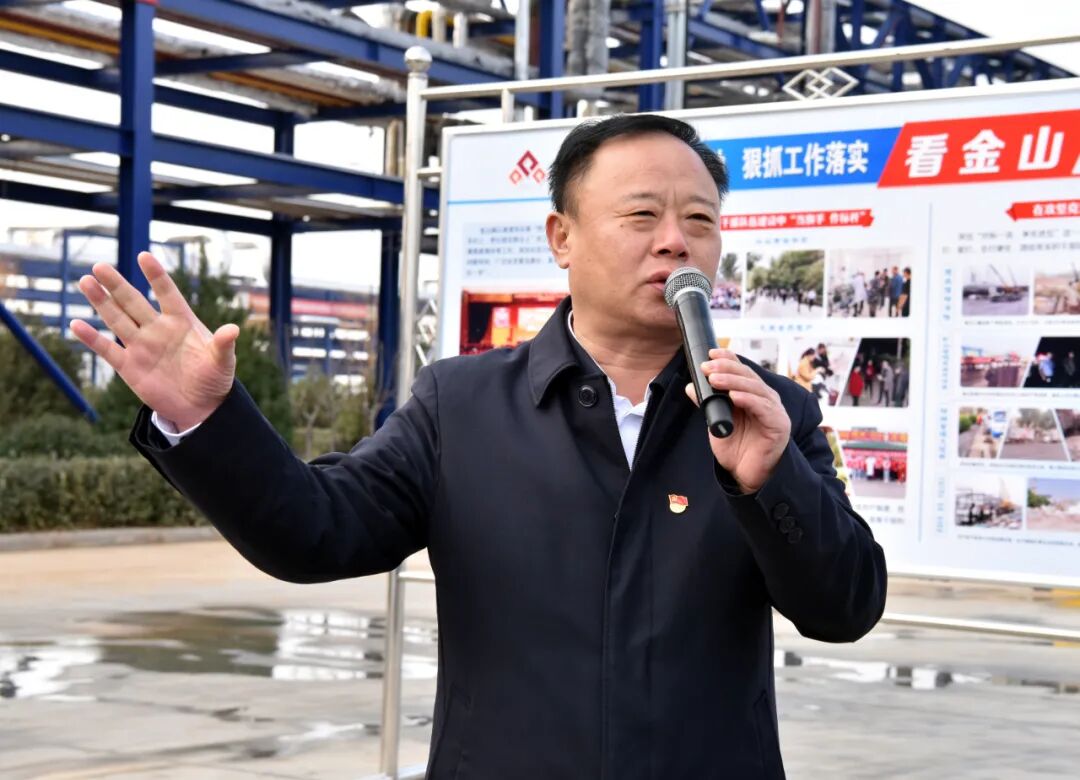 11月27日上午,临淄区经济社会发展暨基层党建现场观摩点评会金山镇分会场,设在齐翔腾达丁腈胶乳建设现场。