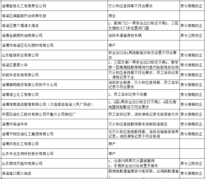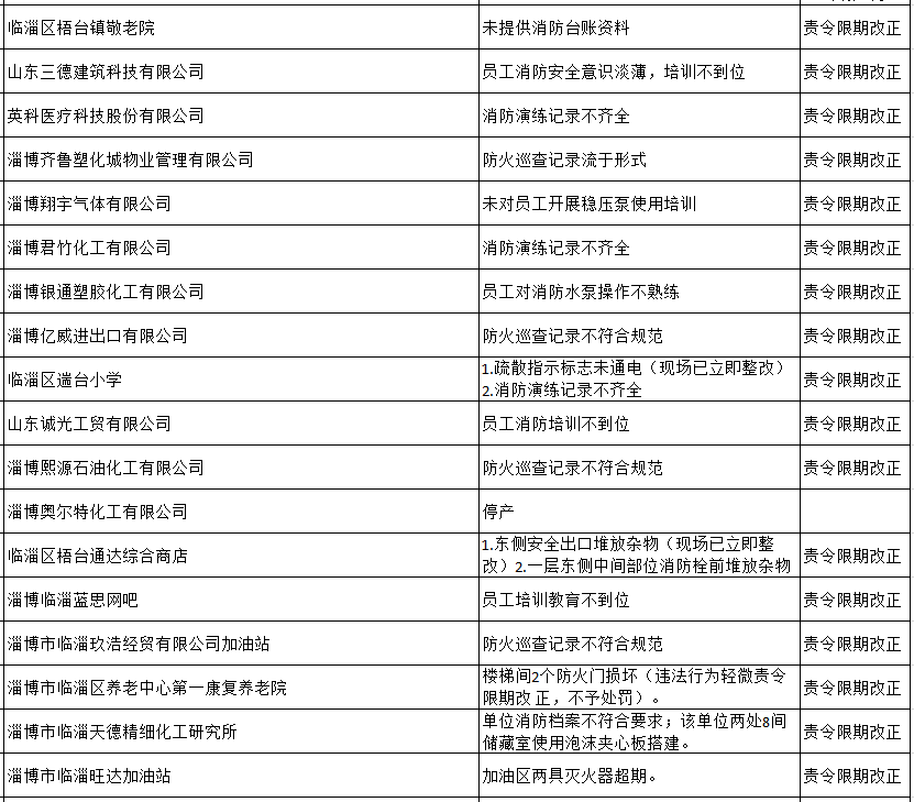 为推动社会各单位认真落实消防安全主体责任,及时消除火灾隐患和消防违法行为。根据“双随机、一公开”工作要求及消防大队《2020年消防监督抽查计划》,临淄消防大队依法对全区部分消防安全重点单位进行了消防监督抽查。现将消防监督抽查结果公告如下: