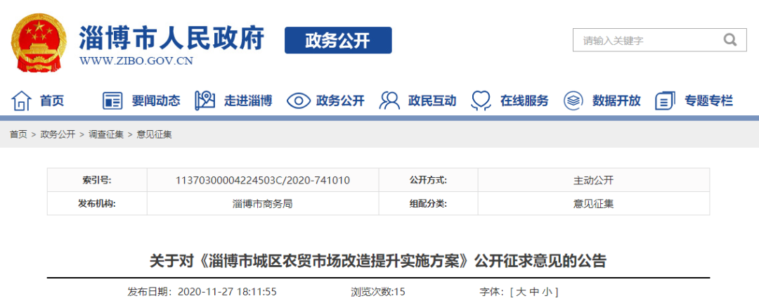 按照有关规定,现将《淄博市城区农贸市场改造提升实施方案》向社会公开征求意见,现予公示: