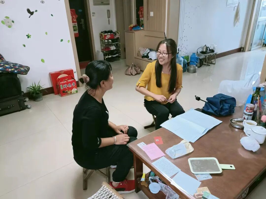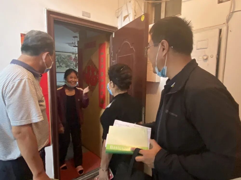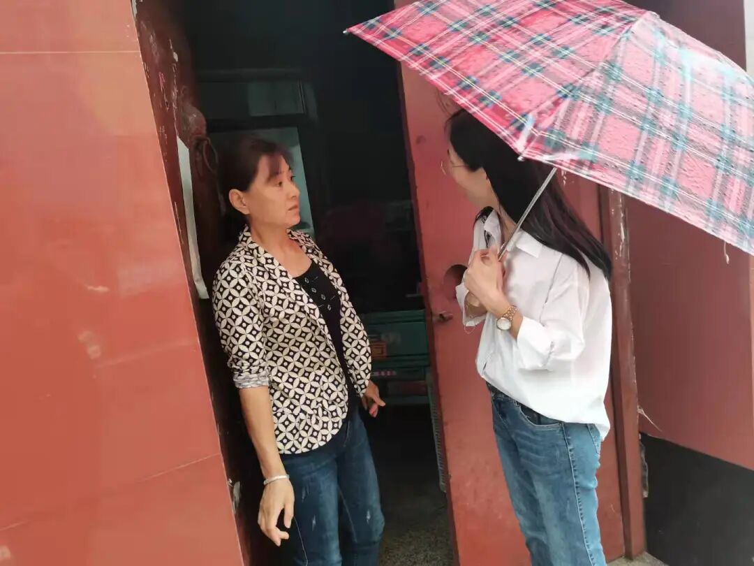 工作人员冒雨入户走访