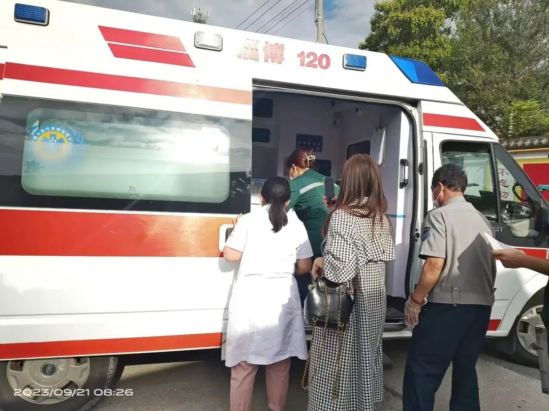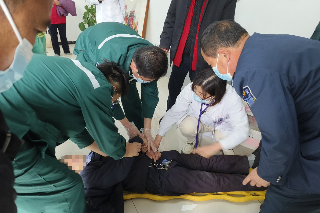 医生仔细询问了大爷的病史,安排大爷坐下休息,并赶忙联系救护车,联系患者家属,准备去医院。